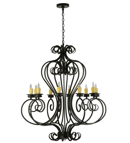 Beauty and grace come to light with this elegant chandelier highlighted with an elaborate Hand-Forged Iron Scrollwork design. 10 complementary faux candlelights are perched on distinctive bobeches featured in a tasteful Timeless Bronze finish. This classic decorative lighting fixture is perfect to illuminate entryways, lobbies and other rooms where you want to make a design statement. Handcrafted in our 180,000 square manufacturing facility in Yorkville, New York. The candlelights, metal finishes and fixture sizes can be customized to meet your needs. UL and cUL listed for damp and dry locations.