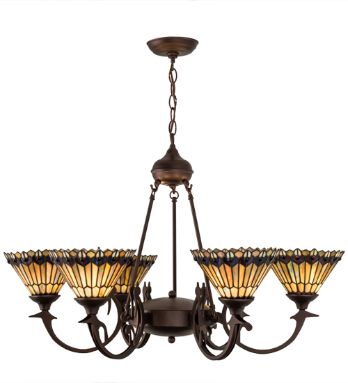 As distinctive as beautiful Peacock fanning feathers in the wild, no two shades will ever be the same as their individuality can be as remarkably unique as their personality. This artistic creation utilizes swirling opalescent art glass background combinations including Beige, Yellow Pinks, Golden Greens, Ivories, Bluish Whites, Turquoise Blues, Olive and Spring Greens. The eye of the plumage design reveals Purples, Pastel Blues, Teals, Cobalt and Ivories, accented with Blue and Purple colored jewels. Individual pieces of glass are hand cut and wrapped using Meyda Tiffany's famous copperfoil construction. Each shade is a unique work of art with color variations based on natural ingredients inherent in the glass. Mahogany Bronze finish.