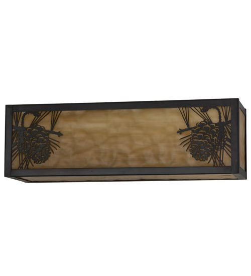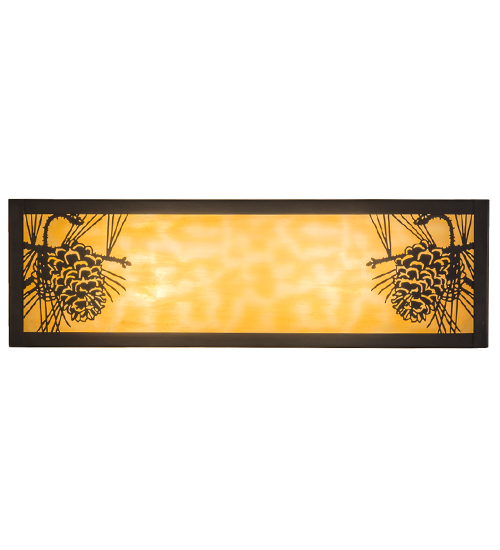 Stunning pinecones with pine needles flank stunning Beige art glass, which is framed with hardware hand finished in a warm Craftsman Brown. Custom crafted by Meyda artisans at the foothills of the beautiful Adirondack Mountains in New York, this fixture is available with custom colors, styles, sizes and dimmable, energy-efficient lamping options. Use it as a vanity light in a bath or as a wall sconce in a corridor.