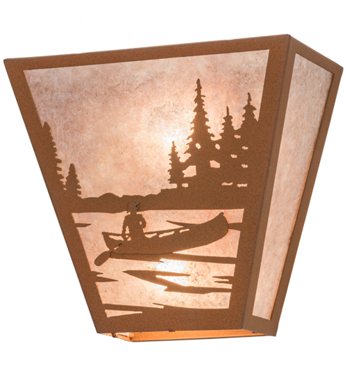 A visually appealing design that depicts the calm of nature as a sportsman paddles his canoe down a gentle mountain stream. The wall fixture features an inverted Silver Mica shade that is enhanced with a frame and decorative accents in a stunning Earth finish. The sconce is ideal for beautiful ambient illumination on a wall in your home, lodge, restaurant, or business. The Canoe at Lake Wall Sconce is included in our American-made, American-designed, handcrafted Sporting Life Collection. Manufactured in Yorkville, New York. UL and cUL listed for dry and damp locations.