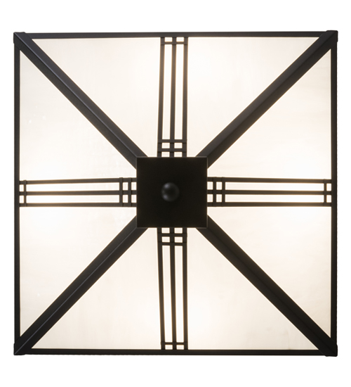 This clean transitional ceiling fixture is designed with an appealing White art glass in a Mission styled frame, which is featured with accents and hardware in a Black Textured finish. This fixture is the perfect lighting accent that will enhance any decor, for fine homes, restaurants, boutiques and hotels. Prairie Loft is custom crafted in the Meyda facility in Yorkville, NY. Custom sizes, styles, colors and dimmable energy efficient lamping options are available.