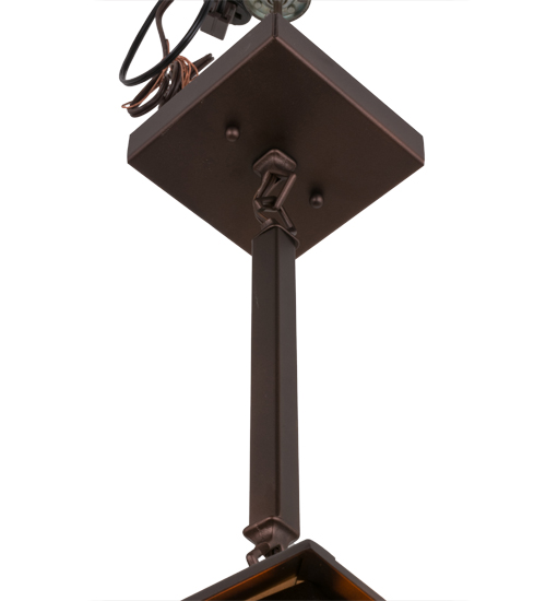This handsome transitional ceiling fixture is designed with an appealing Mission styled Amber Mica shade, which is enhanced with linear accents and hardware featured in a warm Mahogany Bronze finish. This fixture is the perfect illuminating centerpiece that will enhance any decor, for fine homes, restaurants, boutiques and hotels. Prairie Loft is custom crafted in the Meyda facility in Yorkville, NY. Custom sizes, styles, colors and dimmable energy efficient lamping options are available. The chandelier is UL and cUL listed for damp and dry listings.