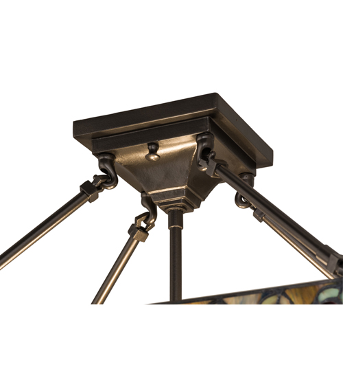 16"L Tiffany Jeweled Peacock Oblong Semi-Flushmount
