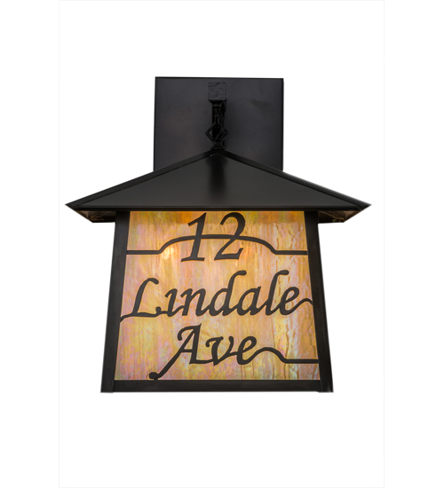 This elegant Craftsman Signature Stillwater wall sconce is personalized with the 11 Lindale Ave address featured in a handsome Craftsman Brown finish. Soft ambient light is diffused beautifully through the Beige Iridescent Glass diffuser. The fixture is perfect for installation on interior walls in corridors and offices. The Personalized Stillwater Wall Sconce is included in our American-made, American-designed, handcrafted Personalized Collection and manufactured in Yorkville, New York. The fixture is UL and cUL listed for dry, damp and wet locations. This lighting fixture can be ordered by calling us and adding your business or family name for your next project. This wall sconce is included in our Build Your Own Craftsman Signature Series, which features unlimited combinations of styles. The collection is called Build Your Own because it is fully configurable and customizable from size and design to finish and lens color. Marine grade, solid brass, or copper raw materials are utilized to ensure items from the Craftsman Signature Series of outdoor and indoor lighting will stand the test of time, as these premium metals are impervious to most types of oxidation. Hand-applied Patina finishes on brass and copper are sealed with a clear varnish and over time, may require gentle maintenance, such as wax, to delay or reverse the natural living finish attributes indicative of this finishing process. Patina finishes on brass and copper provide strong resistance to fading from sun exposure, will not chip or crack, and will not rust like a steel-framed item in the same conditions. Choose from many style options, or send us your concept today! Call today to learn how to use the configuration tool available on our website for an instant item number!