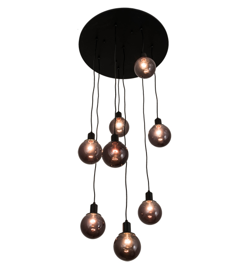 Innovation and imagination are integrated for a stunning decorative lighting look. A captivating illuminating design, this cascading pendant displays 8 Smoke Glass globes. The Bola orbs reveal customer-supplied Edison bulbs attached to Steel hardware featured in a Solar Black finish. The pendant is perfect for foyers, lobbies, and other spaces with tall ceilings. Custom crafted by highly skilled artisans in our 180,000 square foot manufacturing facility in Yorkville, New York. Custom colors, styles and sizes are available, as well as dimmable energy efficient lamping options such as LED. UL and cUL listed for damp and dry locations.