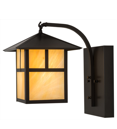 Crafted of Solid Brass, this straight line design is enhanced with a Mission styled profile inspired by the American Arts & Crafts Movement. This Craftsman Signature lantern features stunning Beige Iridescent art glass, which is complemented with accents, frame and hardware featured in a warm Craftsman Brown finish. The optional Photocell activates when sensing darkness outdoors and illuminates the fixture for visibility, safety and security. Handmade in the USA, this wall sconce is offered in custom sizes, styles and finishes as well as dimmable energy efficient lamping options such as LED. The fixture is UL and cUL listed for dry and wet locations.