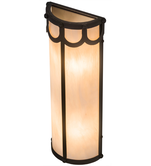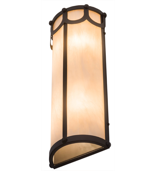A striking transitional styled wall fixture for residential, hospitality and commercial applications, the Carousel features a Fleshtone Idalight shade which is complemented with hardware and decorative accents in an Oil Rubbed Bronze finish. The tall cylindrical wall luminaire will make a design statement in hallways and other rooms throughout your space. Handcrafted in our Yorkville, NY manufacturing facility, Carousel is available in custom sizes, styles, finishes and dimmable energy efficient lamping options such as LED. UL and cUL listed for dry and damp locations