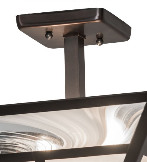 This stunning Craftsman styled ceiling fixture is inspired by the Arts and Crafts movement. The striking Mission straight line design is featured in White art glass, which is complemented with a White Baroque glass border. The Solid Brass frame, decorative accents and hardware are featured in an Antique Brass finish. The fixture is handcrafted by Meyda artisans in the Yorkville, NY manufacturing facilities, at the foothills of the Adirondack Mountains. Custom sizes, styles, colors and lamping options such as LED are available. The fixture is UL and cUL listed for damp and dry locations.