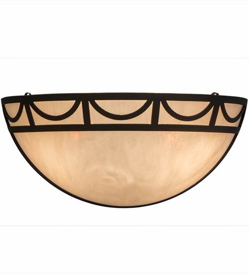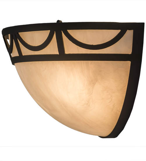 A striking transitional styled wall fixture for residential, hospitality and commercial applications, the Carousel features a Fleshtone Idalight shade which is complemented with garland styled accents trimming the border. The frame and hardware is highlighted in an Oil Rubbed Bronze finish. The arc shaped wall luminaire will make a design statement in hallways and other rooms throughout your space. Handcrafted in our Yorkville, NY manufacturing facility, Carousel is available in custom sizes, styles, finishes and dimmable energy efficient lamping options such as LED. UL and cUL listed for dry and damp locations.