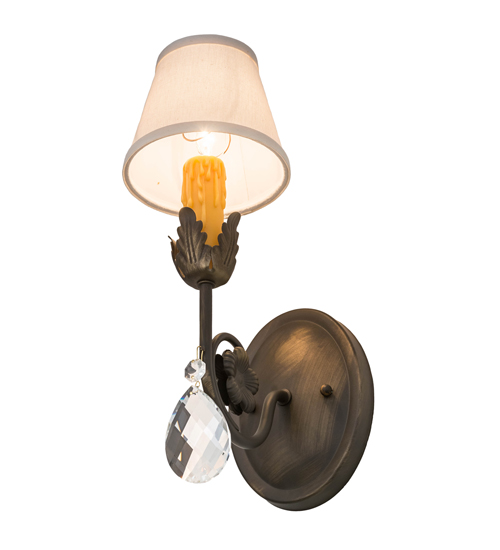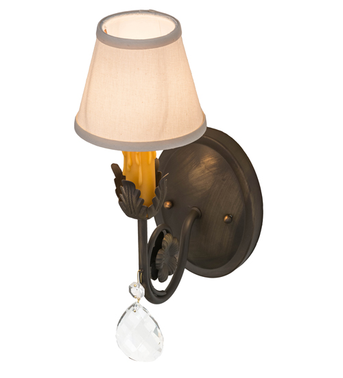 Exquisite styling and luxurious charm are reflected in the Amber faux Candlelight crowned with a Natural Linen Textrene shade and perched on a decorative bobeche which is accented with an Acanthus leaf design. The elegant luminaire is embraced by a scrolled arm with matching medallion accent and hardware featured in an Antique Brass finish. Custom sizes, styles, colors and dimmable energy efficient lamping options such as LED are available. Made in the USA. UL and cUL listed for damp and dry locations.