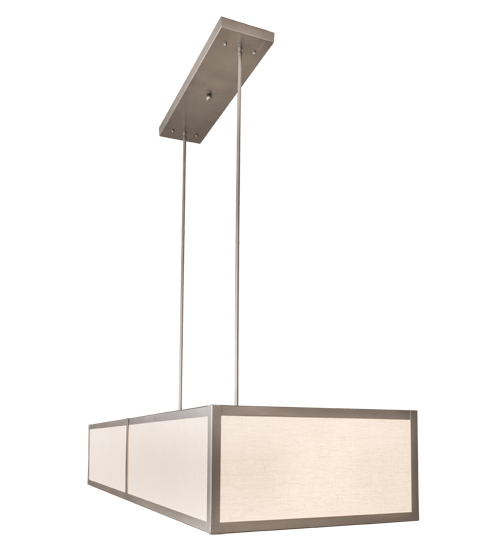 Rendering an impressive clean, architectural modern look. This elegant lighting design features an Off-White Textrene Shade with a Statuario Idalight bottom diffuser. The hardware is offered in a handsome Nickel finish. Ideal for illuminating conference rooms, reception areas, counters, and islands. The Quadrato Oblong Pendant is included in our American-made, American-designed, handcrafted Modern Lighting Collection and manufactured in Yorkville, NY. UL and cUL listed for dry and damp locations; however, we do not recommend installing it in spaces that experience a large amount of moisture due to the fabric shade.