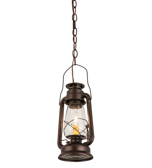 A dramatic, unique illuminating accent for a home, restaurant, retail or commercial environment, the Miners Lantern features handsome styling and creative allure. The lantern hardware and decorative accents are featured in a Mahogany Bronze finish, which complements the Clear Glass lens? revealing a candelabra bulb that illuminates from within. Custom crafted by Meyda artisans in the Yorkville, NY manufacturing facility in the USA, the mini pendant is available in custom sizes, styles, and colors, and with dimmable energy efficient lamping options. This fixture is UL and cUL listed for damp and dry locations.