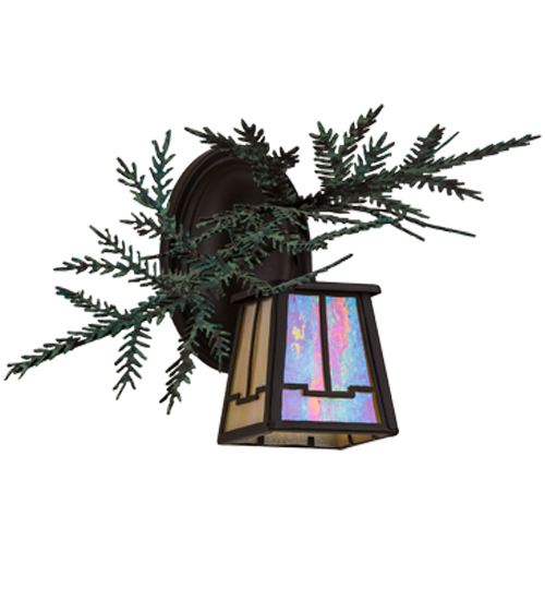 Invite the natural charm of the American woodlands into your home, camp, lodge, or business with this stunning island pendant. A Beige Iridescent Glass lantern offered in a stunning Arts & Crafts design is adorned with Green Handpainted Pine Branch with matching Pine Needle metal accents on this unique Nature Inspired fixture. This stunning striking wall fixture features a Cafe Noir finish to create a mesmerizing effect. The fixture pairs beautifully with the Left Wall Sconce, model 182277. Domestically produced in our 180,000 square foot manufacturing facility in Yorkville, NY. Customize lantern colors, metal finishes and sizes to your taste. UL and cUL listed for damp and dry locations.
