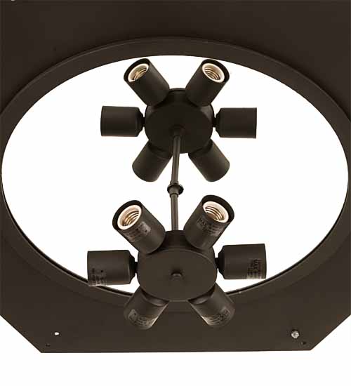 Geometric shapes are juxtaposed for an innovative, superior level of aesthetics and optics. The hexagon profile features 6 Clear Seeded Glass panels which are complemented with a sturdy Craftsman Brown finished frame. The fixture is enhanced with a round Clear Glass Mirror on the inside top above the light cluster and a Clear Seeded Glass bottom diffuser. Custom crafted in our manufacturing facility in Yorkville, NY. Custom sizes, styles and finishes are available, as well as dimmable energy efficient lamping options. UL and cUL listed for dry and damp locations.