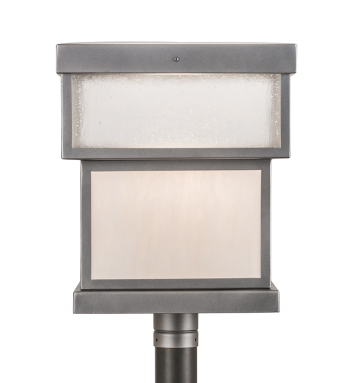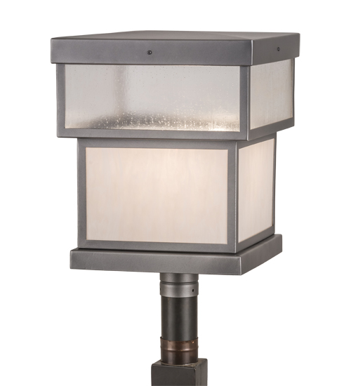 This impressive Quadrato Stack post mount is custom crafted with two geometric styled shades for a unique layered design statement. A Rainstone Idalight shade crowns a narrower but taller cube-like diffuser featured in Whitestone Idalight. The hardware, decorative accents and frame are featured in a Pewter finish. Custom made by expert artisans, this fixture is perfect for indoor and outdoor applications, which is typically mounted to a post or column. Custom colors, styles and sizes are available. Energy efficient lamping options such as LED are offered. The fixture is UL and cUL listed for dry, damp and wet locations.