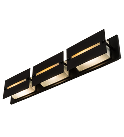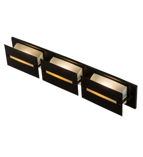 Inspired by the frozen mountain creeks in the northeastern region of the US. Three Provostone Idalight strips overlay Clear Frosted Glass insets on this Arts & Crafts vanity light. The linear frame and raised panel are hand-finished in Solar Black to create the signature look of the American Bungalow. To meet your lighting needs, the fixture can be installed vertically or horizontally in a fine bath or as a wall sconce in a hallway or other rooms. Moss Creekside Vanity Light is a part of our American-made, American-designed, handcrafted Contemporary lighting collection. Manufactured in Yorkville, New York. UL and cUL listed for dry and damp locations.
