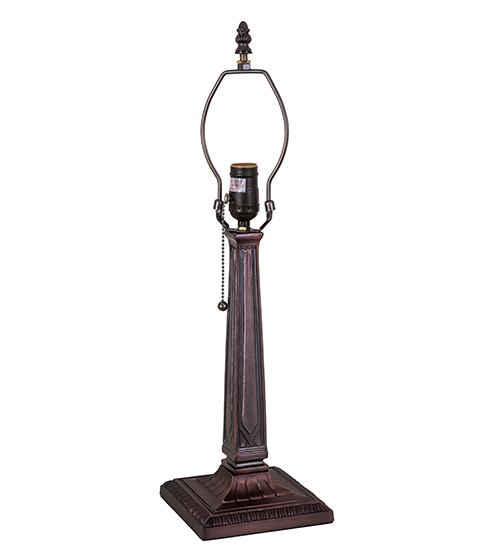 A magnificent Trophy Deer is captured standing alongside a mountain lake as the Blue Sky shines over the American wilderness. The sky is represented with Sky Blue Art Glass while trees are featured in White Iridescent Glass and Lavender Iridescent art glass complete the lake. The Brass shade frame and accents are featured in a Craftsman Brown finish while the lamp base is displayed in a Mahogany Bronze finish. The Deer at Lake Table Lamp is featured in our American made, American designed handcrafted Rustic Lighting Collection. Manufactured in Yorkville, New York. UL and cUL listed for dry locations.