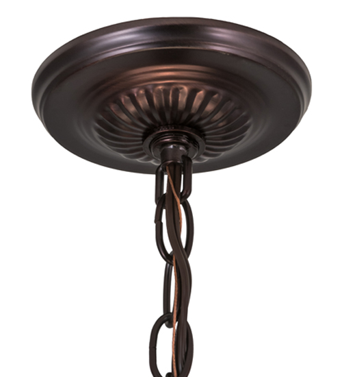 This Tiffany Roman Custom Pendant features Light Blue diamond colored jewels complemented with Seafoam Green ovals and central bands which accentuate this elegant Ivory colored art glass interpretation of a famous Tiffany design inspired by Italian art and architecture. The scalloped border on top is featured in Cathedral Red. Handcrafted of authentic stained glass using the famous Meyda copperfoil construction, the shade is embraced by Hand-forged hardware featuring a Mahogany Bronze finish. UL and cUL listed. No 2 sheets of stained glass will precisely match the beautiful work of art shown. We cannot depict every color variation but if you are looking for a specific color, call us today for updated image of our most current stock items.