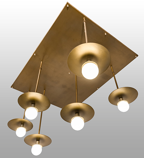 White Mouth Blown OpalGlass Orbs are crowned by Gold Matte finished saucers on this Bola Plato Cascading Pendant. Handsome hardware is featured in a complementary finish. Each of the 6 pendants are featured below the rectangular canopy. Custom crafted by highly skilled artisans in our 180,000 square foot manufacturing facility in Yorkville, New York. Custom sizes and finishes available. UL and cUL listed for dry and damp locations.