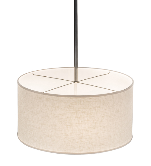 Designed with a round profile and a clean architectural look, this appealing and versatile ceiling fixture defines a sophisticated aesthetic. This Off White Textrene Shade is designed with a Statuario Idalight bottom diffuser and complemented with hardware featured in a Charcoal Grey powder coated finish. Handcrafted in our 180,000 square foot manufacturing facility in Yorkville, New York, this transitionally styled pendant is available in a wide range of custom choices including various designs, colors, sizes and dimmable energy efficient lamping options such as LED. The 24-inch wide fixture is UL and cUL listed for damp and dry locations however we do not recommend installing it in spaces that experience a large amount of moisture.