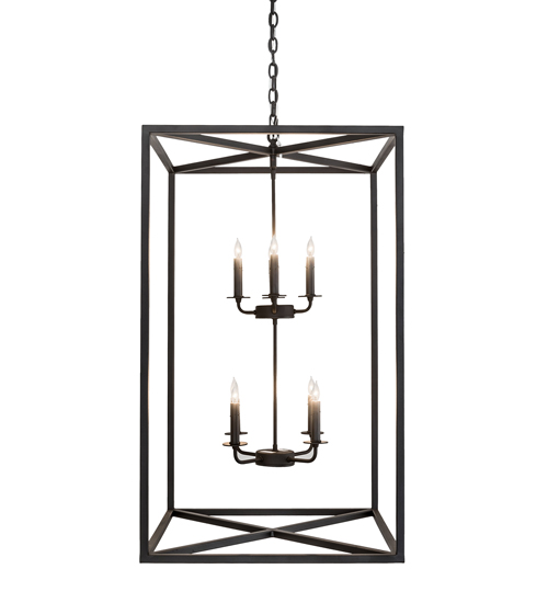 A sophisticated architecturally styled fixture is designed with a pizazz that is unique, fresh and stylish. Give your decor an extra edge with this breathtaking fixture, which is highlighted with a solid steel structure. Beautiful ambient illumination is delivered by 8 faux candlelights. The hardware and frame are featured in a handsome Textured Black finish. Handmade in our 180,000 square foot manufacturing facility in Yorkville, New York Available in custom sizes, styles and finishes, as well as dimmable energy efficient lamping options. UL and CUL listed for dry and wet locations.