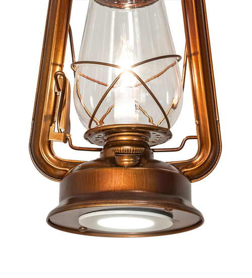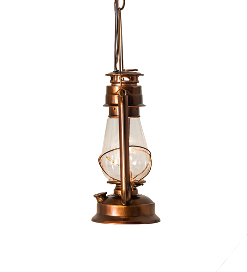 A dramatic, unique illuminating accent for a home, restaurant, retail or commercial environment, the Miners Lantern features handsome styling and creative allure. This rustic pendant recreates an old world oil lantern that was used in the coal industry to keep miners safe. The hardware and decorative accents are featured in a Vintage Copper finish, which complements the Clear Glass lens. Place mini pendants in a row across a bar, counter, table or island to create a dramatic design statement. Handcrafted by highly skilled artisans in our 180,000 square manufacturing facility in the USA. Custom sizes, styles, colors and dimmable energy efficient lamping options are available. The 7-inch wide fixture is UL and cUL listed for dry and damp locations.
