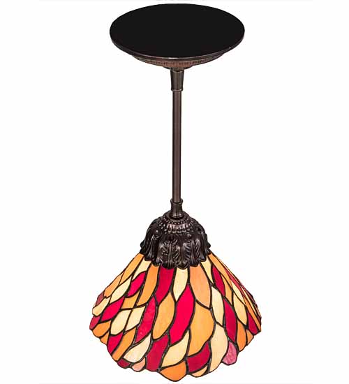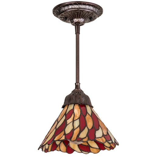 Cathedral Red, Beige, and Honey stained glass becomes luminescent in this wispy Willow leaf patterned shade. This eye-catching shade is created using the famous Meyda copperfoil construction process. The overall height of the mini pendant ranges from 15 to 67 inches as the suspension rod adjusts & assembles in the field using four included tube lengths in a Mahogany Bronze finish. To create a dramatic design statement, install these mini pendants in groups to illuminate bars, counters, tables, and kitchen islands in residential, commercial, and hospitality settings. The overall height can be adjusted by combining the four stem lengths included: 9-inch, 15-inch, 19-inch, and 27-inch in any combination to achieve the desired drop from the ceiling. The Willow Mini Pendant is featured in our American-designed, handcrafted Stained Glass Collection. UL & cUL listed for dry and damp locations. Each shade is a unique work of art with color variations based on natural ingredients inherent in the glass.