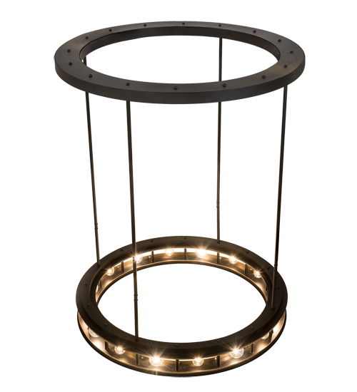 Inspired by the popular Minimalist Movement, Alva Cilindro features a round profile with 16 Customer Supplied Medium base G25 LED lamps. The curvaceous frame with hardware are featured in a Solar Black finish, with the lower ring's interiors finished in Matte Buttered Brass. Handmade by skilled artisans in Yorkville, NY, this Impressive fixture is available in custom sizes, styles and finishes. Dimmable energy efficient lamping options such as LED are offered. The 49-inch wide pendant is UL and cUL listed for dry and damp locations.