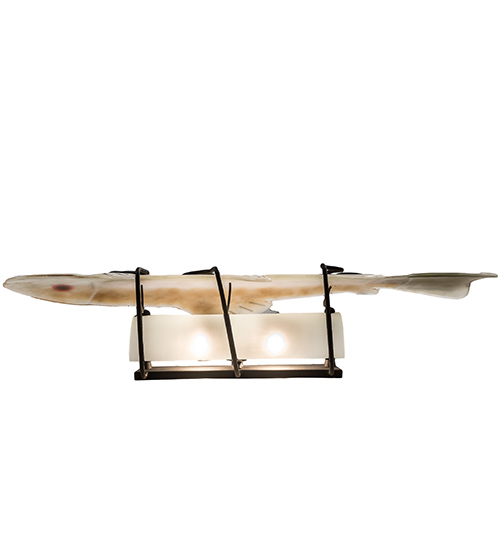 The Trout Wall Sconce offers an innovative and striking Fused Art Glass design. Handcrafted of various hues of specialized fusible art glass using our unique mold and the eye of our glass artist. A true work-of-art, ideal for sportsmen, outdoor enthusiasts and those whose appreciate a work of beauty. Custom made by skilled craftsmen in our 180,000 square foot manufacturing facility in Yorkville, New York near the Adirondack Mountain Lakes. Sconce will vary slightly due to the nature of glass forming. Custom options include a broad range of sizes, colors, and designs. UL and cUL listed for dry and damp locations.