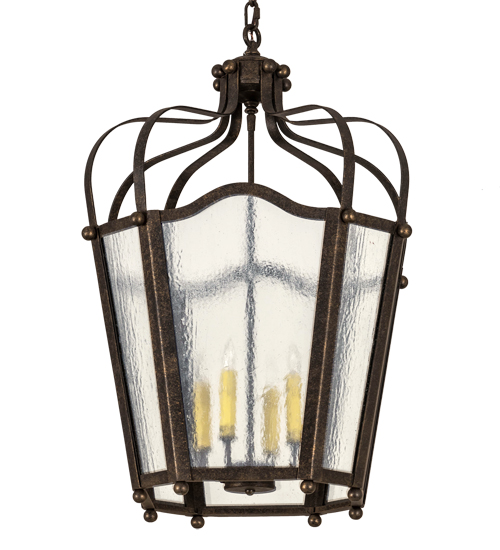 Utilizing a blend of timeless craftsmanship and classic design, the ever-popular Citadel brings home unsurpassed quality and shapely appeal. Evoking a dramatic effect, beautiful ambient light is projected through Clear Seeded Glass which reveals 4 Amber faux candlelights featured within this pendant. Citadel is enhanced with a dramatic design, frame and ballpoint accents featured in a Golden Bronze finish. The overall height of this pendant ranges from 34 to 81 inches as the chain length can be easily adjusted in the field to accommodate your specific application needs. The fixture is handcrafted in our 180,000 square foot manufacturing facility in Yorkville, NY. Custom options available. UL and cUL listed for dry and damp locations.