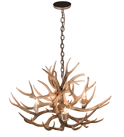 Dramatic wildlife designs come to light. Capture the rustic charm of naturally shed, hand selected Antlers from Whitetail Deer. No animals are harmed and all Antlers are 100 percent authentic. This stunning chandelier is adorned with four complementary faux candlelights that project beautiful ambient illumination and complemented with an Antique Copper finish. The overall height ranges from 21 to 52.5 inches as the chain length can be easily adjusted in the field to accommodate your specific lighting application needs. Handcrafted by highly skilled artisans in the USA. Custom sizes,candlelight colors and finishes are available to meet your specific needs. UL and cUL listed for dry and damp locations.