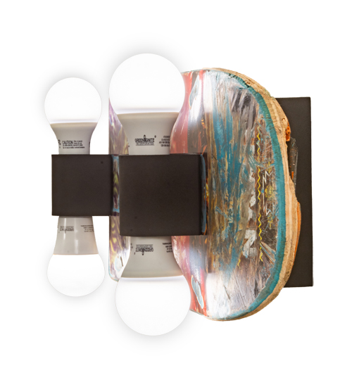 Transform any space into a unique environment with this modern Wall Sconce. This sconce features a real Skateboard used by our own skateboard pro and is complemented with Wrought Iron finished hardware. Each sconce is one of a kind and can be personalized with a skateboard of your choice (based on availability). The fixture illuminates with four customer supplied E26 base lamps. Handcrafted in our 180,000 square manufacturing facility in Yorkville, NY. UL and cUL listed for damp and dry locations.