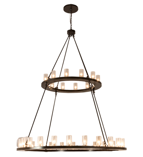 Blending an elegant style with a classic distinguished look. Loxley is custom crafted with 36 Clear Seeded Glass Cylindres on two tiers. This grandiose chandelier is featured in a Timeless Bronze finish. Ideal for illuminating dining areas, conference tables, lobbies and other residential, hospitality and commercial spaces. The overall height ranges from 93 to 285 inches as the chain length can be easily adjusted in the field to accommodate your specific lighting needs. Handcrafted by highly skilled artisans in our 180,000 square foot manufacturing facility in Yorkville, New York. Diffuser colors, metal finishes and fixture sizes can be customized to your needs. UL and cUL listed for dry and damp locations.