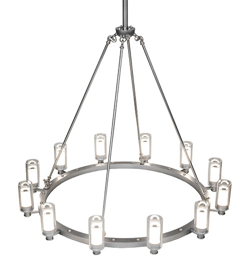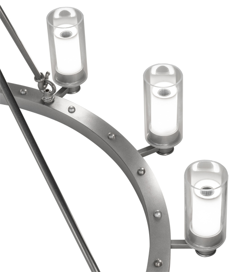 Add a modern look to an old world chandelier of yore. Loxley is custom crafted with 12 Cylindres featuring Crystal Idalight on the outer shade and Contrail Mist Idalight on the inner shade. The decorative ring is hand finished in Sparkle Silver. Handmade in our 180,000 square foot manufacturing facility in Yorkville, New York. Diffuser colors, metal finishes and chandelier sizes can be customized to your specifications. UL and cUL listed for dry and damp locations.