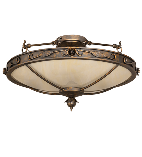 A stunning updated look on a timeless design. An Ancient European scrolled motif is highlighted on the trim of this stunning ceiling fixture which features a Creme Carrare Idalight shade. The fixture is enhanced with sturdy detailed hardware and a finial featured in a French Bronze finish. The Arabesque fixture is ideal for hallways, living spaces and other rooms in both residential and commercial environments. This elegant fixture is handcrafted by highly skilled artisans in our 180,000 square foot manufacturing facility in Yorkville, New York. Options include custom sizes, styles, and colors. UL and cUL listed for dry and damp locations.