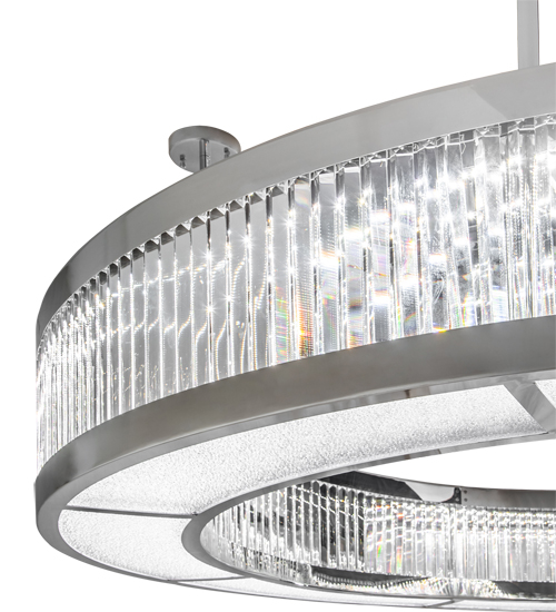 Luxurious jewelry inspired elements elevate this design aesthetic to a new level. Exquisite Crystal Baguettes provide a prismatic brilliance while illuminated by Integral LEDS for energy efficient ambient light. This massive pendant is enhanced with a Chrome finish and a Rainfall Idalight bottom diffuser. The number of crystals, metal finishes and fixture size can be customized to your needs. UL and cUL listed for dry and damp locations.