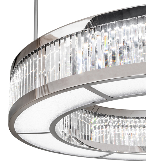 Luxurious jewelry inspired elements elevate this design aesthetic to a new level. Exquisite Crystal Baguettes provide a prismatic brilliance while illuminated by Integral LEDS for energy efficient ambient light. This pendant is enhanced with a Chrome finish and a Rainfall Idalight bottom diffuser. The number of crystals, metal finishes and fixture size can be customized to your needs. UL and cUL listed for dry and damp locations.