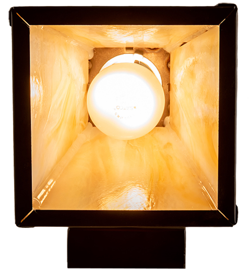 The material is Steel and Glass. The finish is Oil Rubbed Bronze. The glass is Beige Iridescent.