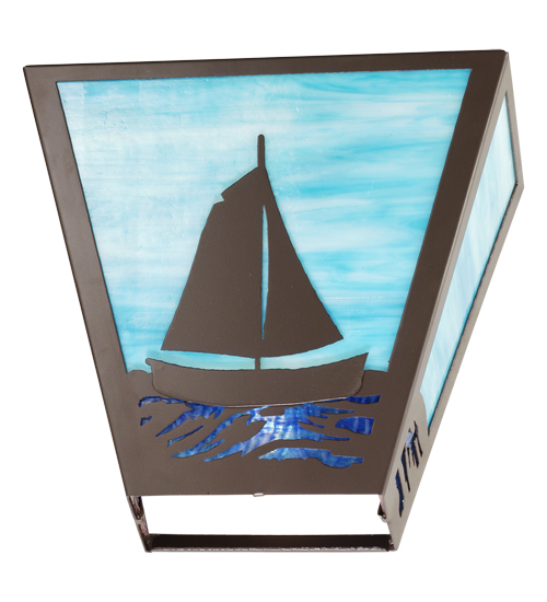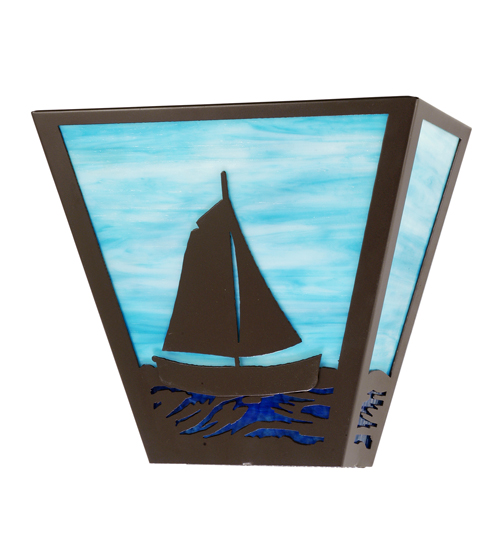May the wind always be at your back as this boat sails windward out to sea, captured beautifully in this charming art glass wall sconce. Soft ambient light shines through a Sky Blue Art Glass shade with Blue Green Ripple Glass Sea below. The frame is featured in a stunning Timeless Bronze finish. The wall fixture is ideal for illuminating hallways and dining areas from Aurora, Colorado, to Anaheim, California, to Honolulu, Hawaii. The Sailboat Wall Sconce is featured in our American-made, American-designed, handcrafted Nautical Lighting Collection and manufactured in Yorkville, New York. UL and cUL listed for dry and damp locations.