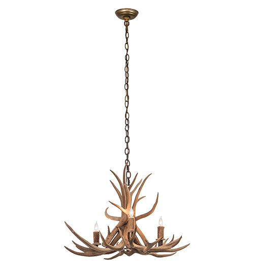 Capture rustic charm of naturally shed, hand selected Antlers from Elk. No animals are harmed and all Antlers are 100 percent authentic. This stunning chandelier is adorned with 4 complementary candlelights projecting beautiful ambient illumination. Overall height ranges from 23 to 55 inches as chain length can be easily adjusted in the field. The Antlers Elk Chandelier is featured in our American manufactured, American designed, handmade Antlers Lighting Collection. Manufactured in the USA. UL & cUL listed for dry and damp locations. Our Antler fixtures are handcrafted using sustainably harvested, naturally shed Antlers. No two antlers are exactly alike and natural variations may be expected from each one-of-a-kind piece.