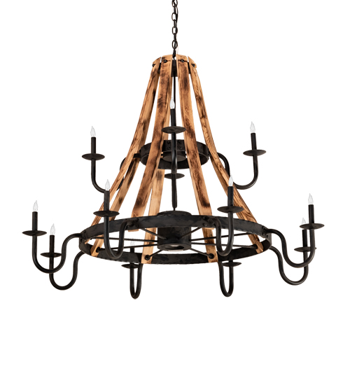 48"W Barrel Stave Madera 12 LT Two Tier Chandelier