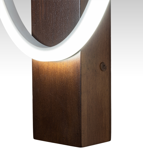 A stunning modern ring is combined with a handsome rustic look. A brilliant illuminating Statuario Idalight Halo is embraced by a Wooden backplate with a Satin Wood finish. Integral LEDs deliver energy efficient illumination and long lamp life. Custom crafted by highly skilled artisans in our 180,000 sq ft manufacturing facility in Yorkville, NY at the foothills of the Adirondack Mountains. Customize fixture sizes, metal finishes and diffuser colors to your tastes. UL and cUL listed for dry and damp locations.