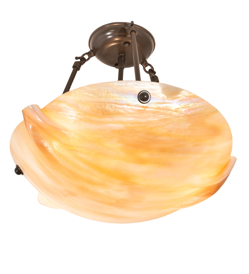 A high-styled, sophisticated organic lighting design. This Atelier Wrinkle-style ceiling fixture features an elegant shade highlighting Beige Iridescent Glass complemented with Mahogany Bronze finished hardware. The perfect centerpiece for any room, the stunning flushmount is a true work of art. Ideal for homes, modern restaurants, and those that appreciate a work of beauty. Traditional workmanship, high-fire kilns, and original tools are used to create art glass in the old world tradition and inspired by modern homes from Westchester County, New York, to Highland Park, Chicago, Illinois, to Northern California. The Atelier Semi-Flushmount is featured in our American-made, American-designed, handcrafted Organic Art Glass Lighting Collection. Each shade is a unique work of art with color variations based on natural ingredients inherent in the glass. Please let us know if color matching is critical when ordering multiple items.