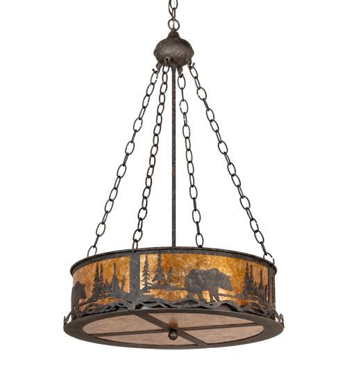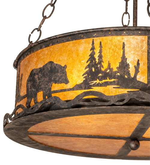 The call of the wild comes to light with a majestic Bear roaming around the woodland lake. Beautiful ambient light shines through the beautiful Amber Mica lens while the fixture is enhanced with accents and hardware featured in a Coffee Bean finish. The ceiling pendant can be installed in dining rooms and entryways in residential, hospitality, and commercial spaces. The overall height ranges from 34 to 80 inches, as the chain length can be easily adjusted on location to accommodate your specific lighting application needs. The Bear at Lake Inverted Pendant is featured in our American-made, American-designed, handcrafted Wildlife Lighting Collection. This fixture is manufactured in Yorkville, New York. It is UL and cUL listed for dry and damp locations. Upstate New York's adventurous playland, known as the Adirondack Mountains, with its many breathtaking forests, lakes, and rivers, is the spiritual birthplace of Meyda and inspires our rustic-themed mica collections.