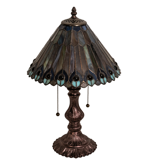 15" High Tiffany Jeweled Peacock Mini Lamp