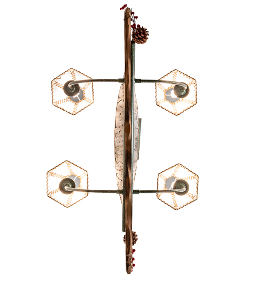 This handsome 4-light chandelier, complete with Antique Copper finished steel paddles, is the perfect complement to your camp, home, lodge or cabin. Camp Reisner is custom engraved with a hot iron branding on the attached signage. This charming fixture features a faux birch bark Canoe, surrounded by four curved arms with Faux Leather shades that top Ivory faux candlelights on bobeches. The hardware includes Tarnished Copper finished arms and frame. The chandelier is ideal for illuminating a bar, island, counter, or table. This luxurious fixture is perfect for illuminating bars, dining tables, lobbies, entryways, and other residential, hospitality, and commercial spaces throughout the U.S., including Greenville, Maine, Wolfeboro, New Hampshire, and Lake Havasu City, Arizona. The Personalized Canoe 4 Light Chandelier is featured in our American-made, American-designed, handcrafted Personalized Lighting Collection. UL & cUL listed for dry and damp locations. Please provide us with your family name so we can develop lighting fixtures that bring joy and pride to your home. Call us for pricing and lead time.