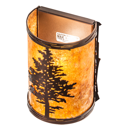 A majestic Tamarack tree is highlighted as the brilliant sun shines in the late morning sky. The curvaceous Amber Mica diffuser complements decorative accents, frame, and hardware featured in a Mahogany Bronze finish. This lighting design is inspired by the Tamarack forests of North America, from New York's Adirondack Mountains, to California's White Mountains to the Yukon River Basin in Alaska. This wall sconce is ideal for illuminating hallways and living areas in camps, lodges, and other residential and hospitality spaces. The Tamarack Wall Sconce is included in our American-made, American-designed, handcrafted Nature Inspired Collection and manufactured in Yorkville, New York. UL and cUL listed for dry and damp locations.