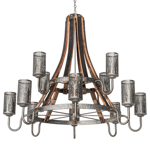 60" Wide Barrel Stave Winter Maple 12 Light Two Tier Chandelier