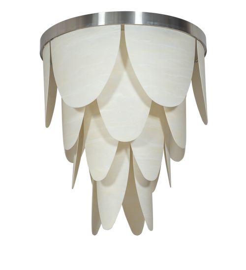 Like an enchanting flower budding with petals, this stunning lighting fixture appears to bloom with beautiful light. Curved Cre'me Carrare Idalight diffusers cascade downward and are complemented with a Brushed Stainless Steel finish. Energy efficient LEDs illuminate for high quality lighting and long life. The Kronick Flushmount is featured in our American made, American designed, handcrafted Commercial Lighting Collection. Manufactured in Yorkville, New York. UL and cUL listed for dry and damp locations.