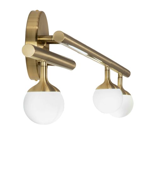 This architectural lighting fixture is designed with a unique and stylish design. Suspended from this wall sconce are three Matte White Art Glass Orbs that are enhanced with a Brushed Waxed Brass frame. The elaborate geometric structure features decorative elements and is ideal for placement in corridors and other spaces where you want to make a dramatic design statement in residential and hospitality settings. It can also be used as a vanity light in fine powder rooms. Perfect in areas nationwide, from Detroit, Michigan, to Louisville, Kentucky, to Sacramento, California. The 60"" Wide Bola 3 Light Wall Sconce is included in our American-designed, handcrafted Modern Lighting Collection. UL and cUL listed for dry and damp locations.
